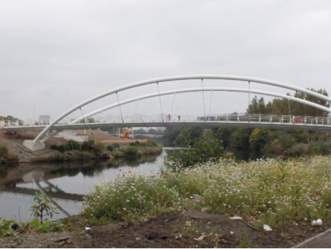 We set off on our bikes, cameras round necks. Saltmarket heading east through Glasgow Green. We approach the Clyde Gateway Area, with its tracts of derelict land. The £5.6 billion Clyde waterfront project plans to transform 13 miles of the Clyde river corridor. The roads are empty – regeneration appears natural, irresistible. We speak to two no-voters who are curious at our filming. They begin to name the wild flowers: poppy, corn flower, campion.
