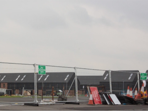 Past the site where the Accord Centre once stood – the day care centre knocked down to provide parking space for the recent Commonwealth Games. Still to be replaced, the protests about the centre continue – the new Emirates Arena watches, prominent on the skyline. We arrive at the Athletes’ Village site, all fresh tarmac, and dusty saplings. Here 3,000 people have been displaced through phased demolition of existing social housing. The ‘new community’ on the Clyde will displace the old one.